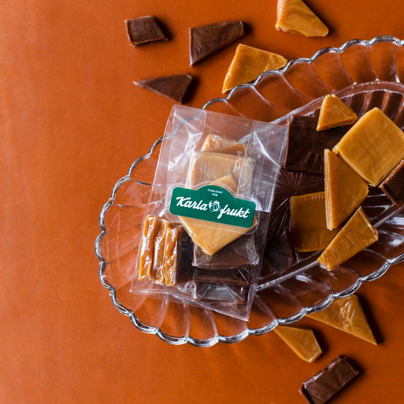 Packad med omsorg i vår butik på Karlavägen, i cellofanpåse som är återförslutningsbar tack vare etiketten.