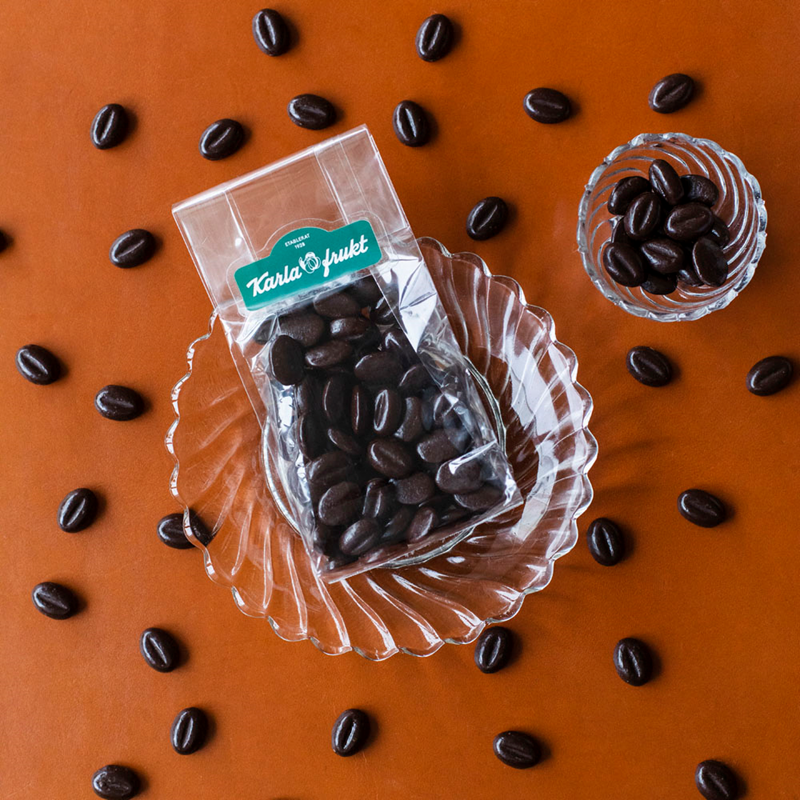 Eleganta moccabönor i mörk choklad. Försvinnande gott! En älskad klassiker i svenskt ”kaffegodis”. Redan på 1930-talet blev den ett måste till kaffet och konditoriernas små pralinskålar. Våra bönor tillverkas av mörk choklad av hög kvalitet, med den distinkta formen som gjort moccabönan till en ikon. Den blanka ytan kommer av noggrant tempererad choklad och varsam tillverkning.